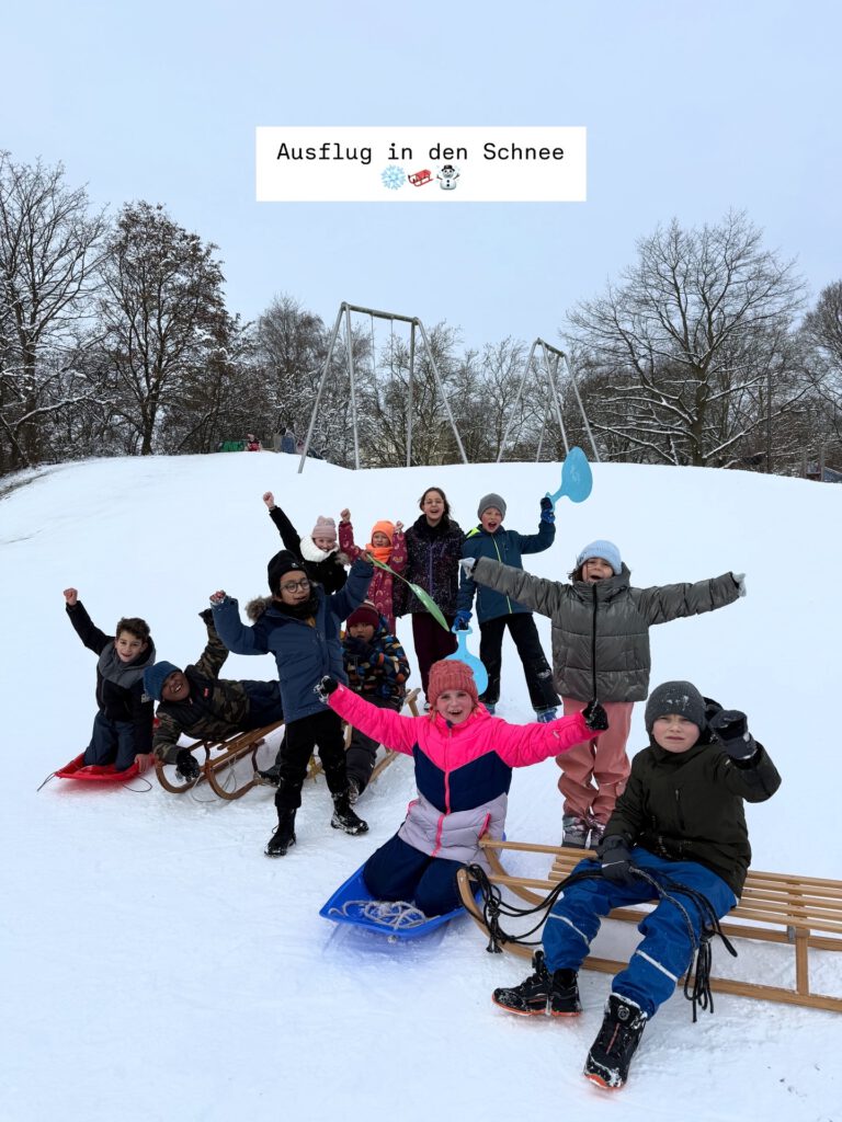 Nach den Ferien zeigte sich der Winter dann von seiner ganz besonders schönen Seite: Im Januar fiel in Hamburg reichlich Schnee. Auf dem Schulgelände entstanden fröhliche Schneemänner und zahlreiche Schneeengel schmückten den Pausenhof. Die Kinder nutzten jede Minute, um den Winter draußen zu genießen. Schlittenfahren inklusive. Ein Schneesturm sorgte sogar dafür, dass die Schule an einem Tag geschlossen bleiben musste. Ein kleines Abenteuer mitten im Schuljahr.